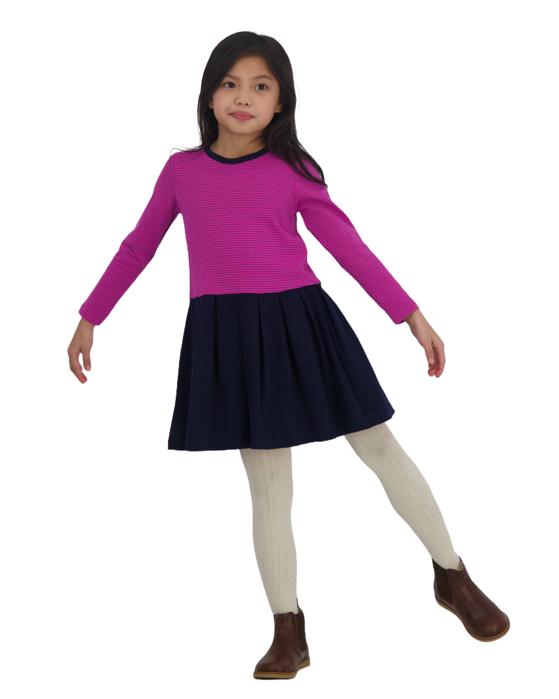 Francesca Girls Dropwaist Dress Pink Navy Stripe