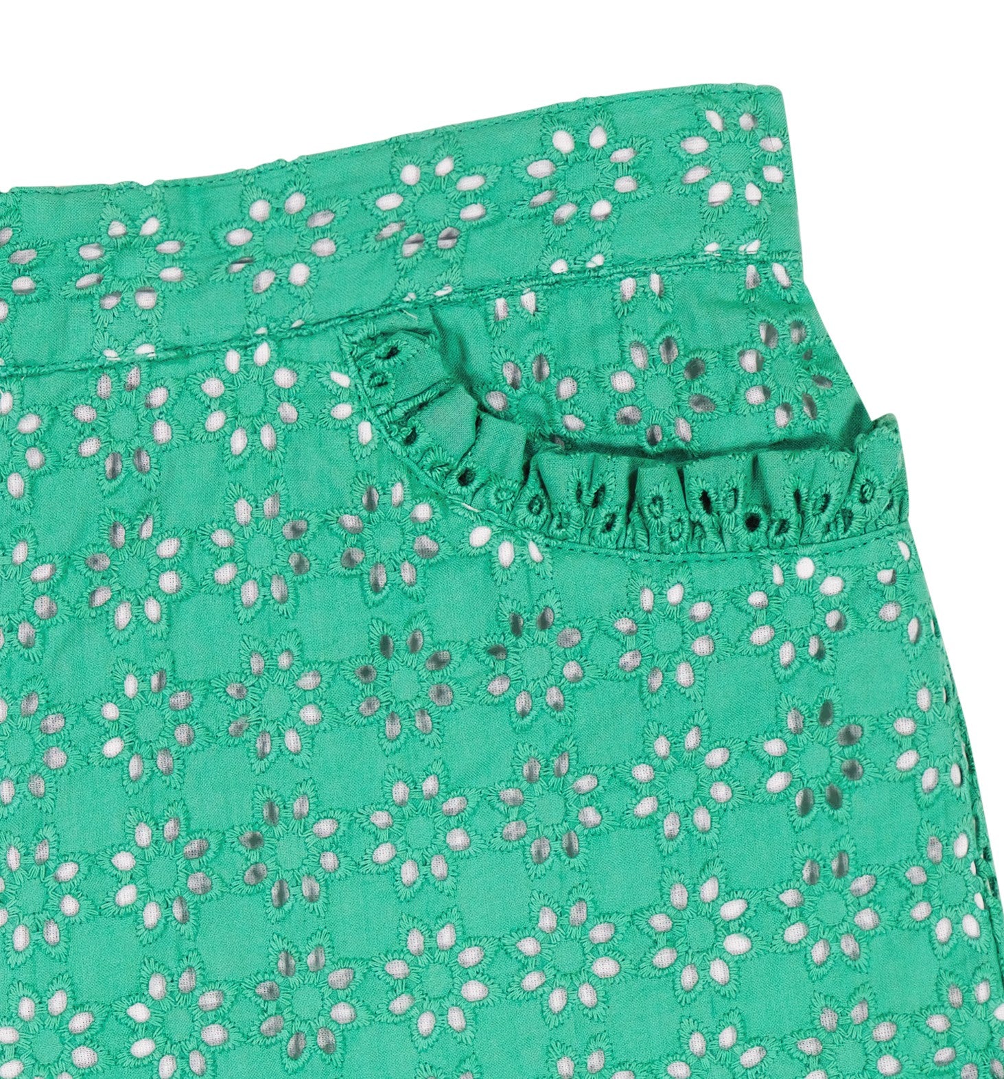 We took our super popular ruffle shorts and dressed them up this season with pockets and a streamlined front waistline. Elastic at back, ruffle pocket. 100% cotton.